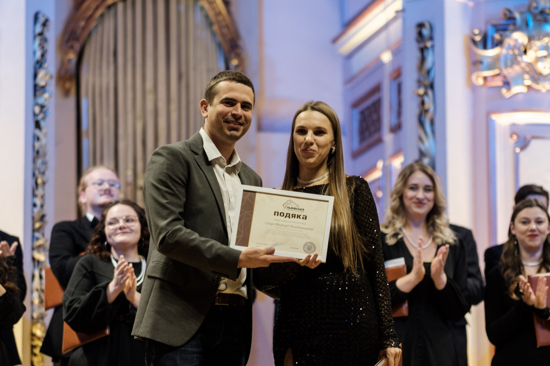 «Сьогодні вітаю велику спільноту, об’єднану любов’ю до музики, до України і до української пісні. 35 років – це вік молодості. Бажаю вам залишатися натхненними, ділитися своїми здобутками й нести українське мистецтво у світі», – зазначив в.о. керуючого справами ЛОР Ярослав Гасяк, який вручив подяки артистам хору від голови обласної ради.