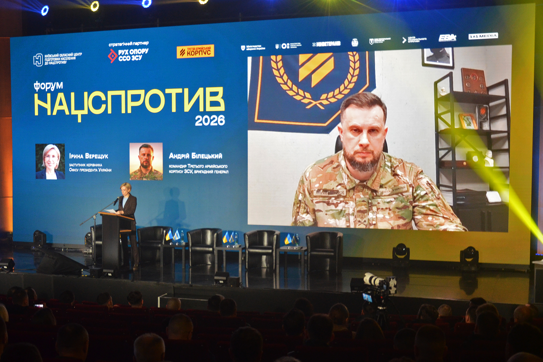 Форум відкрила та модерувала першу панель заступниця керівника Офісу Президента Ірина Верещук, долучилися представники Сил територіальної оборони, командування Третього армійського корпусу та начальники Закарпатської, Запорізької та Харківської областей, які мають розвинуті системи центрів нацспротиву.