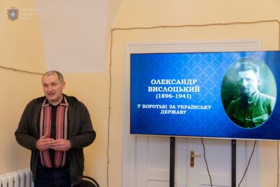 «Життя Олександра Вислоцького є прикладом послідовної боротьби за українську державність і права народу. Він був учасником національно-визвольної боротьби та сотником Армії УНР, згодом представляв українців як посол до польського сейму від УНДО. Значну увагу приділяв розвитку кооперативного руху та діяльності «Просвіти» на Бродівщині, а також заснував і видавав часопис «Брідські вісті», у якому порушував важливі соціальні й економічні питання, закликаючи до єдності та підтримки українського виробника. Окрім цього, він очолював товариство «Луг», що об’єднувало українську молодь, а у 1938 році був відзначений урядом УНР», – розповів Василь Стрільчук.