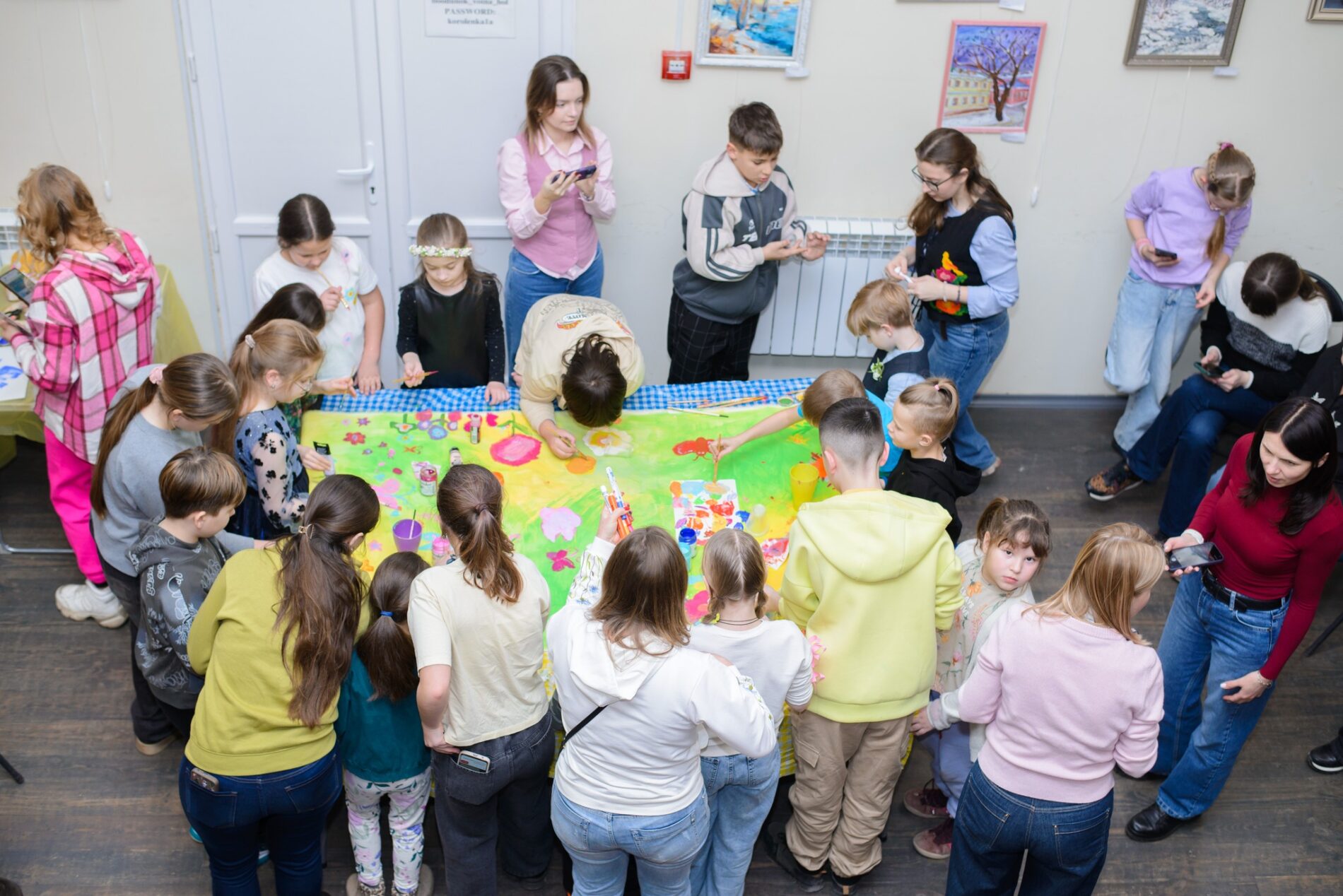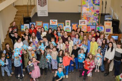 Зібралася тут малеча, яка вже третій рік відвідує творчі майстер-класи під керівництвом Наталії Павлюк та Юстини Павлюк. За цей час юні художники стали справжньою мистецькою родиною, а їхні роботи експонуються не лише в Україні, а й за кордоном.