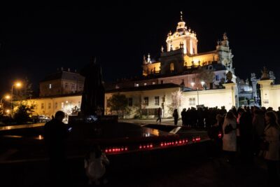 На завершення присутні запалили лампадки біля пам’ятника Митрополиту Андрею Шептицькому на Святоюрській горі.