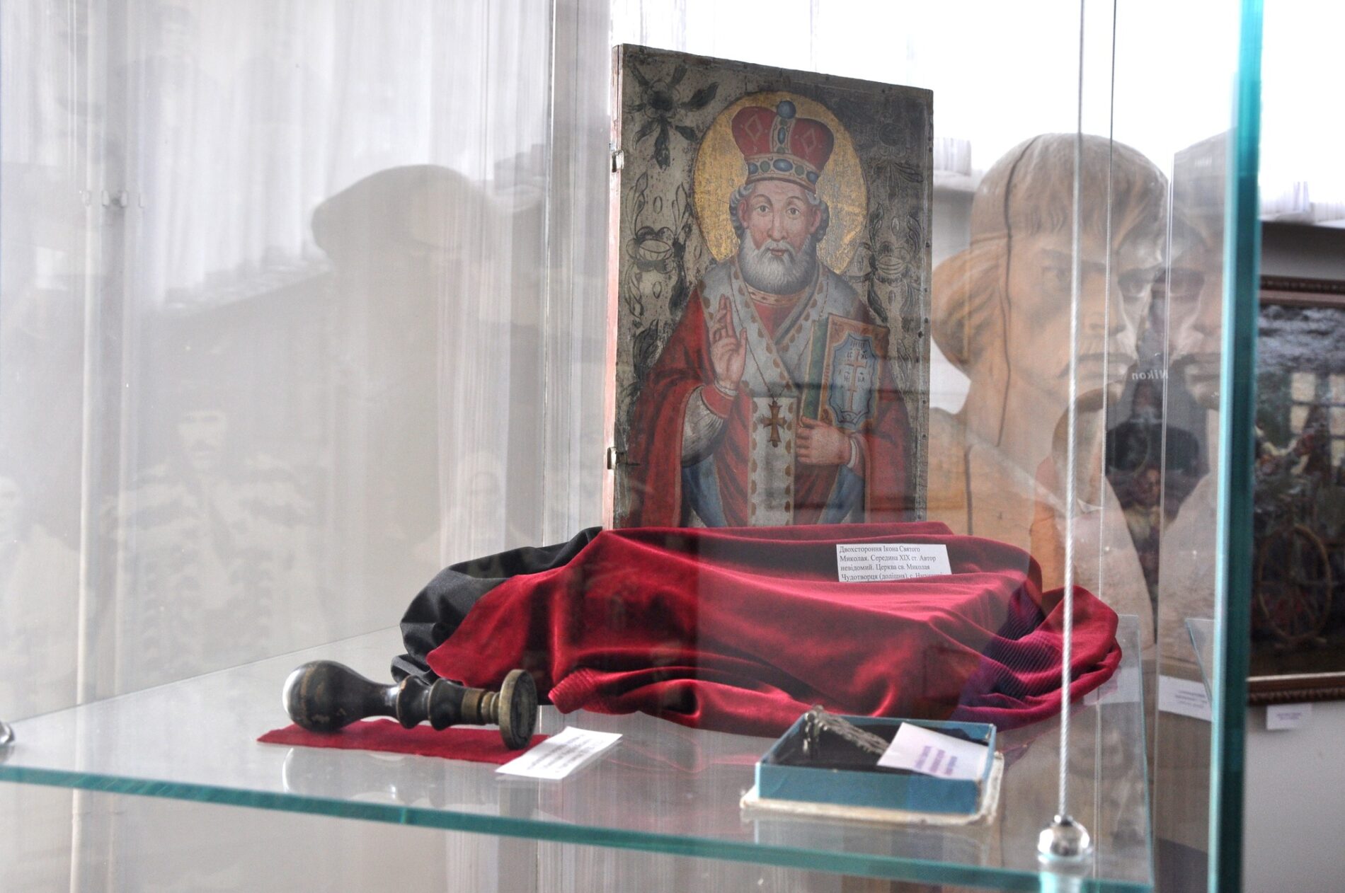 «На двох стендах представлені фотографії інтер’єру та екстер’єру церкви, зроблені у 1988 році спеціалістами Львівського філіалу інституту «Укрпроектреставрація», а також креслення, документація та фото 1992 року. Також в музеї представлені ще деякі артефакти, пов’язані з церквою Святого Миколая Мирлікійського Чудотворця, які розміщені в першому експозиційному залі та підземеллі», – розповіли в заповіднику «Нагуєвичі».
