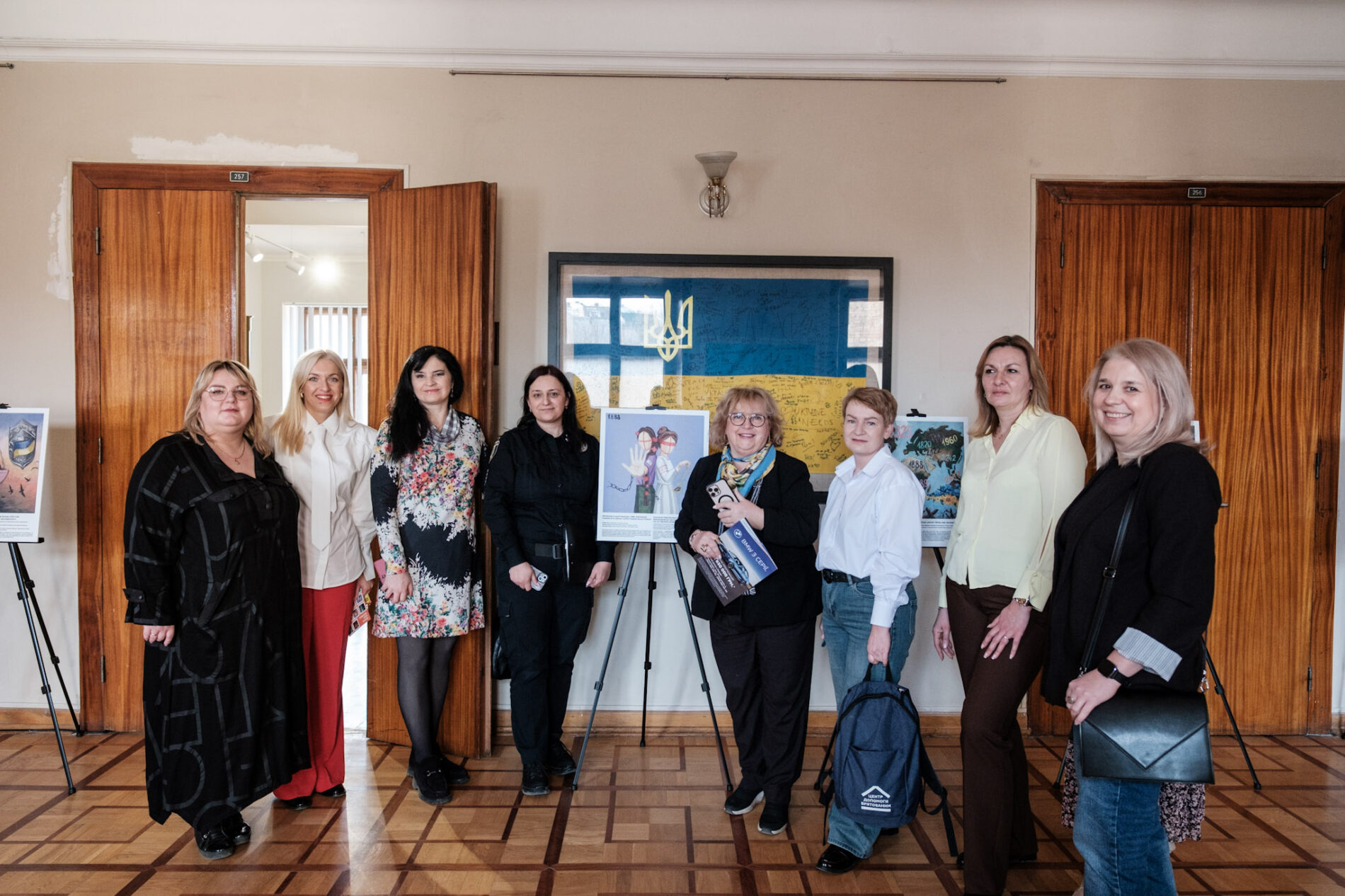 Під час заходу презентували виставкову експозицію, присвячену порядку денному «Жінки, мир, безпека» та ролі мистецької адвокації у його просуванні на регіональному рівні. Її представила голова громадської організації «Центр “Жіночі перспективи”» Любов Максимович. Спершу експозиція, яку презентують на тематичних заходах у всіх регіонах країни та за кордоном, налічувала 14 картин. Їх намалювали відомі мисткині, громадські діячки та представниці найвищих державних органів влади. Нині ж додалося ще 24 картини – від кожної області. На Львівщині Богородицю-Оранту створили художниця, мистецтвознавиця Роксолана Патик та заступниця начальника ОВА Христина Замула.